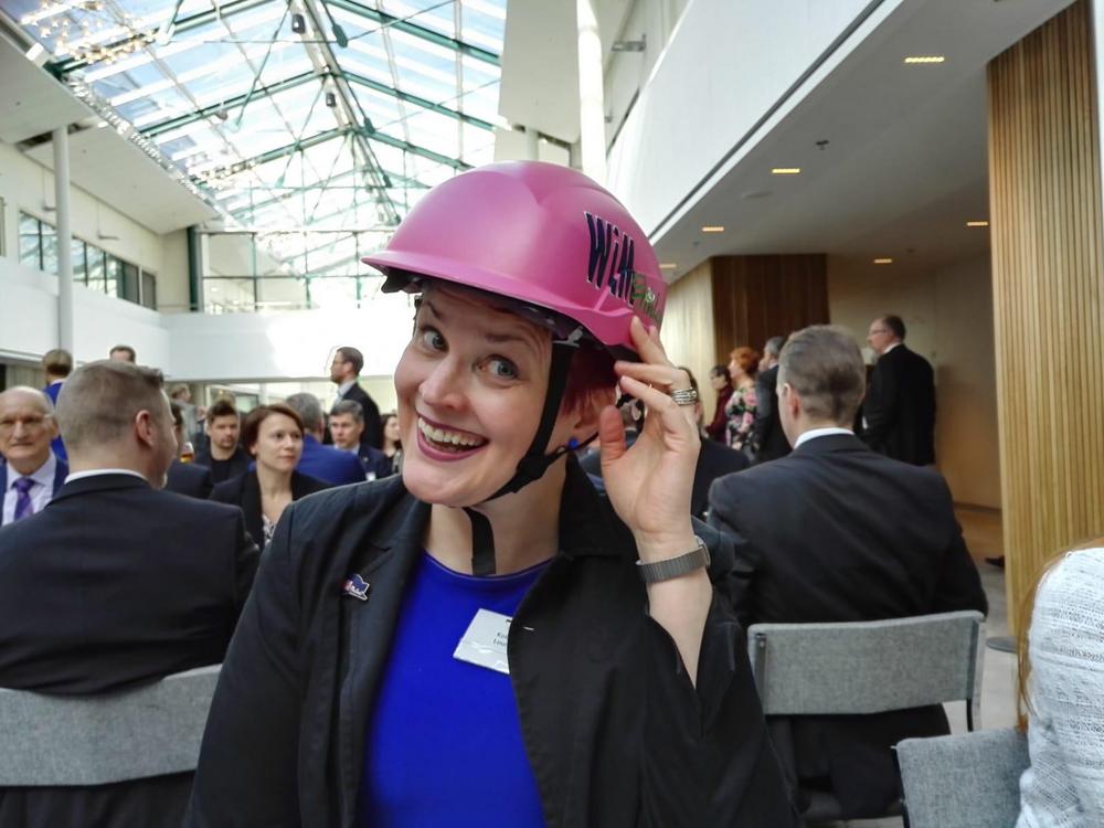 WiM Suomi on edustettuna Vuorimiespäivillä 29.-30.3.2019 Helsingin Messukeskuksessa. Paikalla on niin yhdistyksen hallituksen edustajia kuin muitakin jäseniä, ja myös pinkki kypärä on varustautunut seikkailuihinsa uudella juhla-asulla!